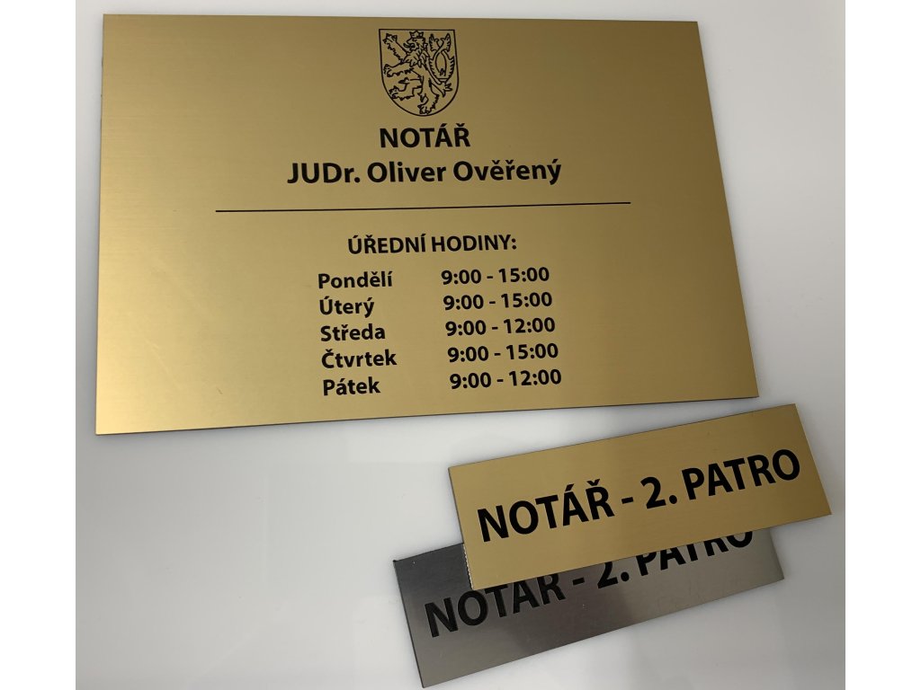 Cedule slouží jako identifikační. Od zvonkových, dveřních, přes vývěsní. Například firemní, pro obchody, notáře, advokáty a podobně.