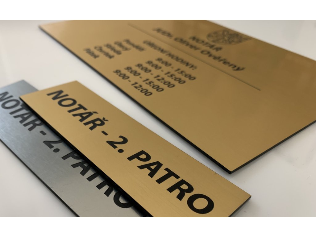 Cedule slouží jako identifikační. Od zvonkových, dveřních, přes vývěsní. Například firemní, pro obchody, notáře, advokáty a podobně.