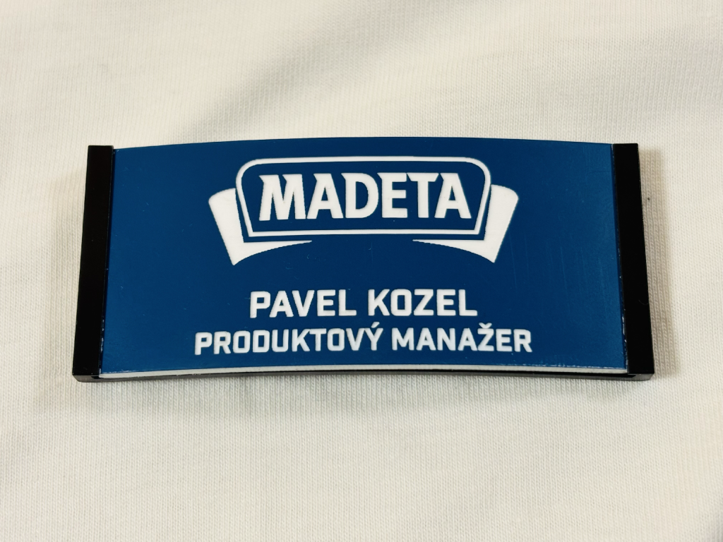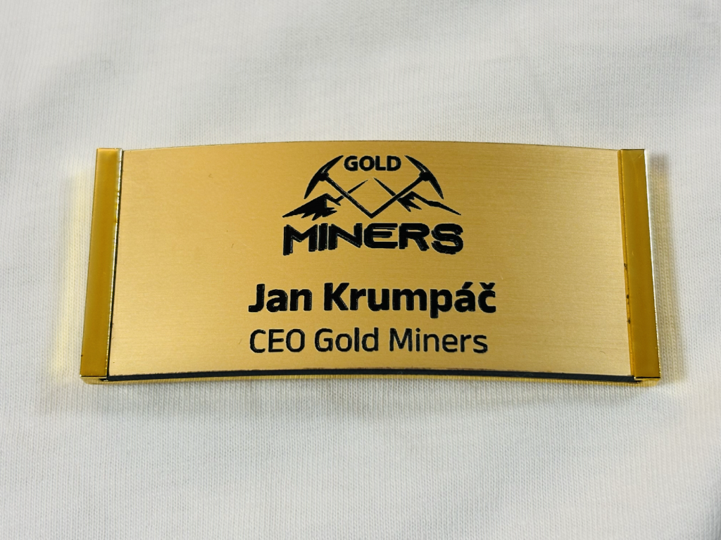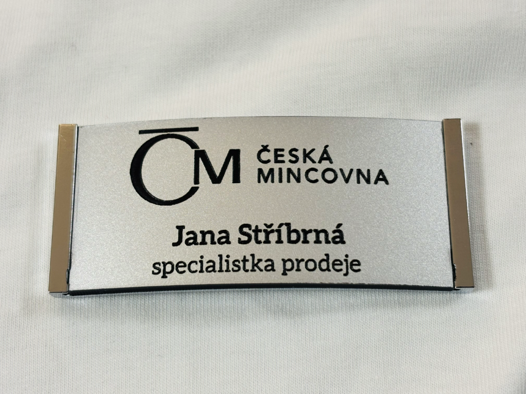 Gravírované jmenovky vyrábíme na míru. Lze vytvořit libovolný design včetně jména, pracovní pozice i firemního loga. Každý kus působí čistě, profesionálně a reprezentativně.